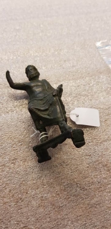 Because the figure is tiny and compact, it might have been utilized by troops and travelers. Bringing a statue that will provide you victory or good weather creates the sense that both the passengers and the soldiers believed that if they treated Jupiter correctly, he would be helpful to them. This concept is known as pax deorum (peace with the gods), and in order to maintain this peace, humans had to offer the proper sacrifices in the proper sequence. So you should offer these sacrifices in honor of the gods even if you are far away from a temple, and so a miniature representation of a deity is important if you are traveling.[7]